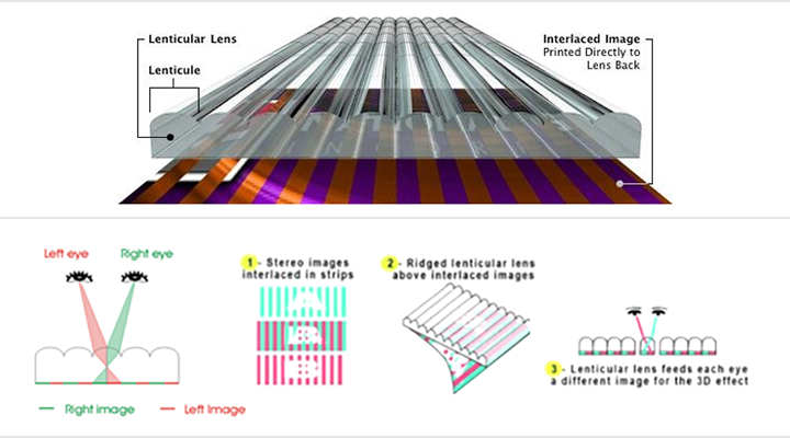 보이는 각도에 따라서 다양한 모양으로 보여지는 현대 회화에서 응용되는 기법 중 하나인 LENTICULAR 방식을 도입하였습니다.