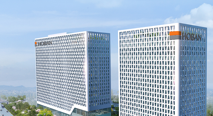 빛과 그림자에 따라 시시각각 변화하는 건물의 입면에서 혁신적이고 변화하는 기업의 정체성은 물론 보행자나 차량이동의 관점에서도