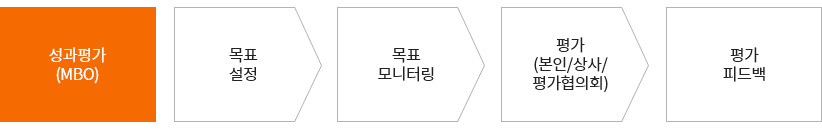 조직목표에 따라 설정된 개인목표의 달성 성과를 공정하고 투명하게 평가하며, 평가결과는 육성, 승진, 보상 등에 활용됩니다.