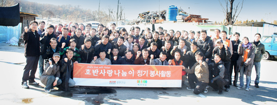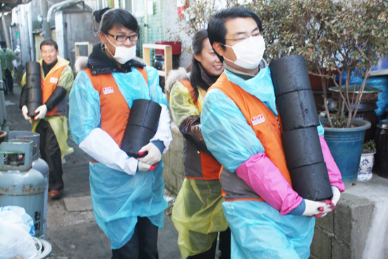 호반건설 전 임직원들이 매달 꾸준히 실천하는 사회 봉사활동의 일환으로 개포동 구룡마을(무허가 판자촌 지역)에서 소외계층인 개포1~4동 내 거주하는 국민기초생활수급권자 및 저소득 가정에게 월동지원을 위한 연탄을 후원하는 '사랑의 연탄배달' 행사가 진행됐습니다.