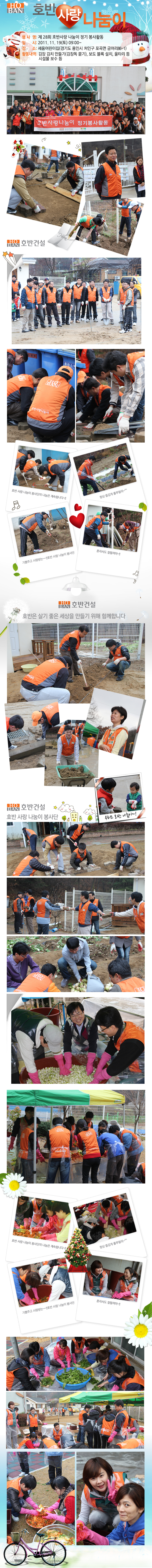 활동내역 : 김장 김치 만들기(김장독 묻기), 보도 블록 설치, 울타리 등 시설물 보수 등