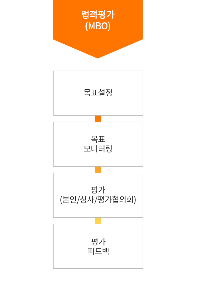 조직목표에 따라 설정된 개인목표의 달성 성과를 공정하고 투명하게 평가하며, 평가결과는 육성, 승진, 보상 등에 활용됩니다.