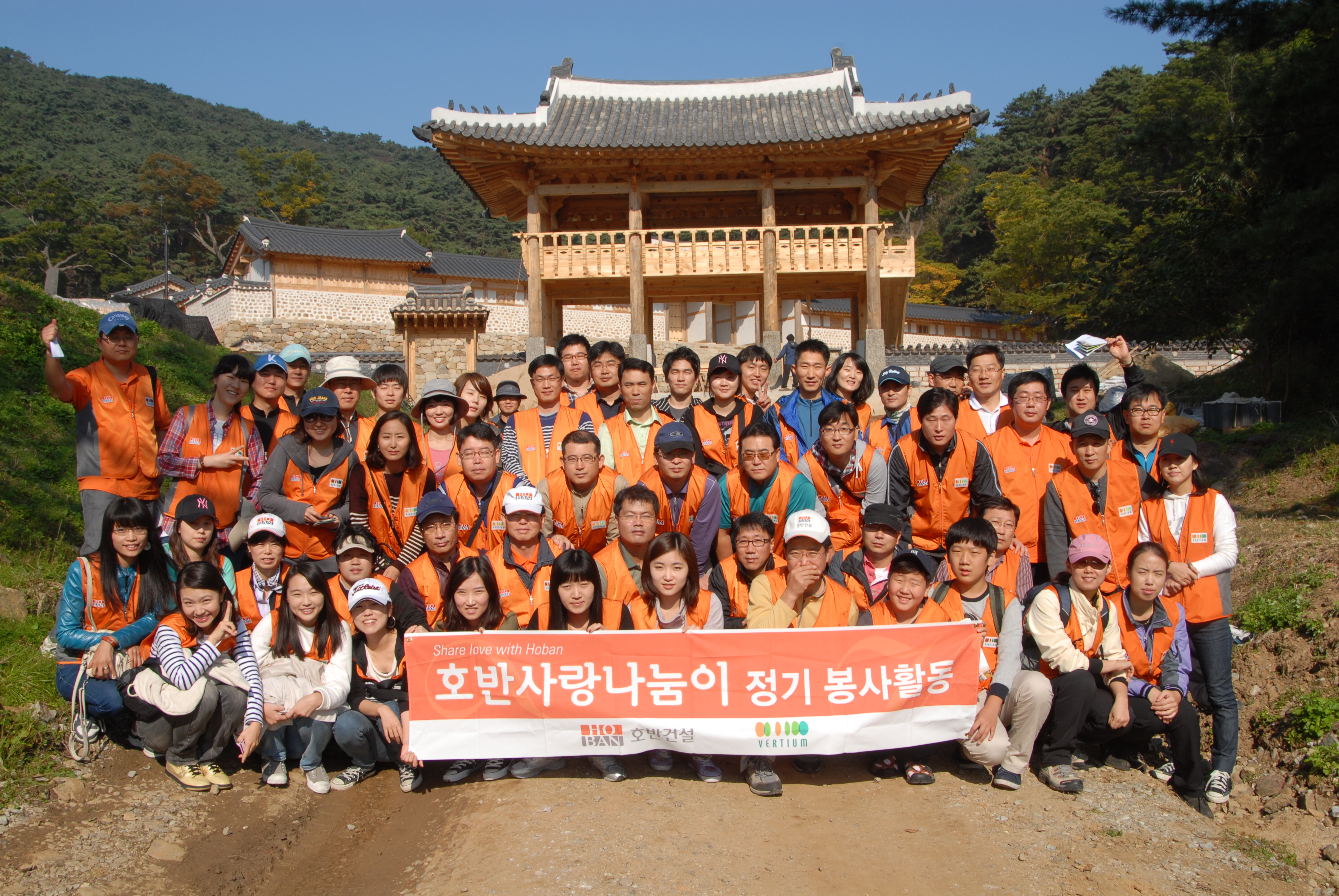 ‘호반사랑 나눔이’는 올해로 창립21주년을 맞은 호반건설의 사내 봉사활동 단체입니다. 직원들의 자발적인 참여로 매월 마지막 주 토요일마다 정기적으로 봉사활동을 진행하고 있으며 이번 달로 14회를 맞이했습니다. 나눔 경영의 철학을 가지고 있는 호반건설은 봉사활동 단체 외에도 재단법인 꿈을 현실로 장학회를 운영하며 기업의 이익을 사회에 환원하기 위한 활동을 활발히 펼치고 있습니다.